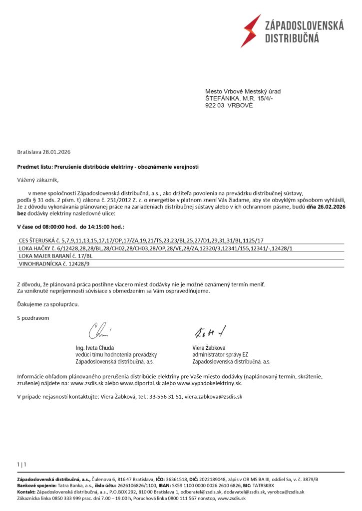 Poruchy ver. osvetlenia a mestského rozhlasu Útv.MH MsÚ